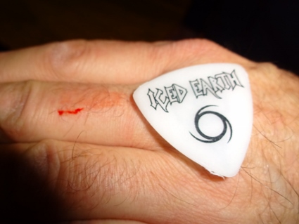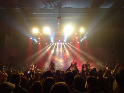 The Silent Wedding aus Athen begaben sich bald in ihre Anheizerrolle und hatten natürlich auch ein paar eigene Fans dabei. Übermäßig zünden konnte ihre Dream Theater light - Chose jedoch nicht, dazu klangen sie mir ein wenig zu seicht, allein schon durch das viel zu dominante Keyboard. Immerhin blieb ein passables "Gutter Ballett" - Cover zum Schluss in wohlwollender Erinnerung. Iced Earth stellten darauf wenig überraschend ein ganz anderes Kaliber dar. Mit ordentlich Druck starteten sie in eine geschmackvoll zusammengestellte Setlist, die eine ausgewogene Mischung aus Kompositionen jüngeren Datums und unsterblicher Klassiker darstellte. Auch wenn Hits wie "Burning Times" oder "I Died For You" natürlich immer die Nase vorn haben werden, kacken "Great Heathen Army" oder "Black Flag" daneben nicht unbedingt ab, sondern sorgen für die nötigen frischen Akzente. Der Sound war gut, die Stimmung auch, und irgendjemand musste ja das heimische Gebräu trinken. Das griechische Publikum tat es eher nicht und beschränkte sich weitgehend aufs Rauchen, zeigte sich aber trotzdem energiegeladener als deutsche Auditorien, was mit dem jüngeren Durchschnittsalter zu tun gehabt haben könnte. Wir waren jedenfalls so ziemlich die ältesten Säcke weit und breit. Spaß hatten wir trotzdem zuhauf, besonders wenn der Bandchef drauflos schredderte, wie nur er es kann. Mit Stu Block hat er nun ja auch einen mittlerweile etablierten Sänger an Bord, der bestens ins Gefüge passt, auch wenn mir dessen pathetische Ansagen bisweilen etwas auf den Zeiger gingen. Der Rest der Besetzung verrichtete solide seinen Dienst, ohne nennenswert aufzufallen. Im letzten Drittel ging es jedenfalls langsam ans Eingemachte mit der "Something Wicked" - Trilogie und dem vom Chef selbst intonierten "Stormrider", einzig "The Hunter" wurde außen vor gelassen. Schließlich noch die Zugabe bestehend aus dem schmissigen "Clear The Way" sowie "Watching Over Me", das ich entspannt anging, um dann doch Klüsenpippi zu kriegen. Amtlicher Schlussapplaus nach knapp zwei Stunden Show, die Band ließ sich zu Recht feiern, und plötzlich ging Lars vor mir zu Boden im leichten Tumult. Mit blutender Schramme am Finger tauchte er triumphierend wieder auf, um ein original Schaffer-Plek zu präsentieren, putzig. Wir nippten noch ein bisschen Alpha, bis wir mehr oder weniger heraus komplimentiert wurden. Auf dem Rückweg machten wir halt an einer der mit eigenem, brüllend laut rödelnden Aggregat betriebenen Imbissbuden, um den nächtlichen Pommesappetit zu stillen, und schließlich bestand Lars noch auf einer Einkehr in einen ganz netten Pub mit halbrockiger Beschallung aber recht ekligem Bier (aus Weizengläsern). Gegen 02:30 h landeten wir wieder im Hotel, wo ich beim Stolpern über die Duschenbegrenzung ungeplant die Stabilität meines Steißbeins testete. Von Crippled Black Phoenix' "Live at Burg Herzberg" ließ ich mich schließlich (nicht zum letzten Mal) in den Schlaf lullen. |