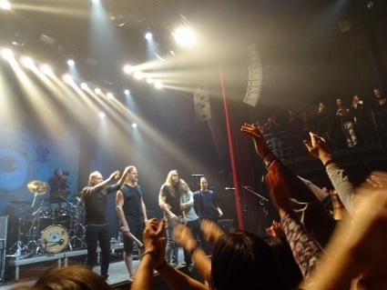 Beim weiteren Umherlaufen spülte es uns spontan in eine gemütliche Taverne, dessen Wirt uns überzeugte, es mit verschiedenen von ihm servierten kleineren Speisen zu versuchen. Dies erwies sich als guter Schachzug, da für alle etwas Passendes dabei war und das ganze sich recht authentisch anfühlte. Mein Speisenanteil war "nistisimo", ein Wörtchen das für Veganer in Griechenland recht nützlich ist. Weinblätter, Oliven, Linsenpastete, dazu fruchtiges Bier, waren eine recht gute Grundlage für den Konzertabend, abgerundet von einem Ouzo mit Eis. Bemerkenswert auch die abenteuerliche Wendeltreppe, die zu erklimmen war, wenn man die sanitären Anlagen aufsuchen wollte. Wir kamen alle heil wieder runter, um den bekannten Weg zum Principal Club zu bewältigen. Lars wurde an der Gaderobe zum zweiten Gig der Woche begrüßt, und schon waren wir drin, wo wir noch ein bisschen was von Methodica mitbekamen. Verpassen konnte man bei der biederen Truppe ja nicht viel. Wie erwartet war heute weniger los als bei Iced Earth, trotzdem war der Laden gefüllt genug, um die entsprechende Stimmung aufkommen zu lassen. Zwei FW-affine Pärchen aus Holland waren auch rechtzeitig eingetroffen, so dass wir uns diesmal nicht ganz so alt fühlten. Die Fates Warning - Show überzeugte von vorn bis hinten, wie das nach dem grandiosen Auftritt in Aschaffenburg nicht anders zu erwarten war. Diesmal in weniger beengten Verhältnissen machte es umso mehr Spaß, und die gut zwei Stunden vergingen wie im Flug, ohne dass es mir ansatzweise zu lang gewesen wäre. Es gibt also doch noch Headliner, die ne amtliche Vollbedienung anbieten und nicht schon nach 70 oder 80 Minuten das Weite suchen. Was war das aber auch für eine geile Setlist! Einzig "And Yet It Moves" fand ich nicht komplett spannend, ansonsten jagte ein Hit den nächsten. Und die Band wirkte wie aus einem Guss, selbst Jim Matheos zeigte Anflüge von Lächeln, einfach perfekt. Mit "Eye To Eye" verabschiedeten sie sich nach einem großartigen Auftritt. Wie gut dass wir das morgen nochmal würden sehen dürfen! Mit Clumsy machte ich mich wieder etwas früher als die beiden anderen auf den Rückweg, nicht ohne bei Mama Tereza eine Pommespause einzulegen. Crippled Black Phoenix in Dauerrotation unterstützten meinen geruhsamen Schlaf. |