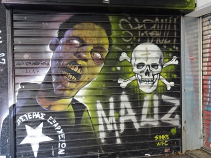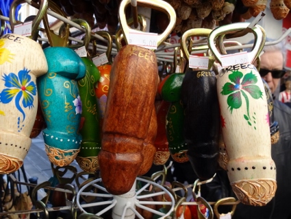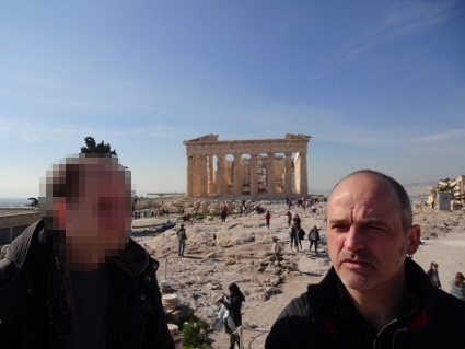 Und schon brach der letzte Tag unseres kleinen Ausflugs an. Clumsy, Krampfes Bruder und Magnesium-Junkie wie ich, litt unter seniler Bettflucht und stattete in seiner Verzweiflung auf eigene Faust dem archäologischen Museum gegenüber vom Hotel einen wohl eher unfruchtbaren Besuch ab. Im Gegensatz dazu brauchte Gonzo nach den nächtlichen Vergnügungen bis auf Weiteres Liegepause, so dass wir zu dritt auf den Touritrip durch Athen starteten. Zum Frühstück holten wir uns erstmal Gebäckartiges und verzehrten dieses draußen im Freien, ganz so kalt war es ja nicht. Dabei konnten wir nochmal feststellen, in welchem Kiez wir uns aufhielten. Ein offizieller St. Pauli - Store gleich nebenan, Totenkopf-Grafittis, Banner mit irgendwelchen Parolen an den Fassaden, der ganze Kram, fast wie zu Hause. Dann ging Lars wie immer mit Handy im Anschlag voran, aber erstmal verliefen wir uns wohl etwas, denn wir stolperten in finsteren Ecken durch die Crack- und Alkiszene. Bald aber stimmte die Richtung, so dass wir uns auf die Akropolis zubewegten. Sonnig war es ja eh die ganze Zeit schon, und nun wurde es gegen späten Vormittag auch frühlingshaft mild, weswegen die dicken Jacken bald zur Bürde wurden. Ein vorgelagerter Felsen bot eine tolle Aussicht über die Stadt und hinüber zur Akropolis, wobei zum Glück nur mäßig viele weitere Touristen unterwegs waren. Als wir dort die Blicke schweifen ließen, drang von unten irgendwo her Musik an unsere Lauscher. Tatsächlich, das war eindeutig "Always Somewhere" von den Scorpions, was in dem Moment super passte und für einen klasse Soundtrack sorgte. Weiter ging's zum absoluten Hotspot, der Wiege der europäischen Demokratie, die außerhalb der Saison für schlappe 10 Euro begutachtet werden konnte. Der Parthenon sah aus, wie man ihn von Fotos kannte, vorm azurblauen Himmel schon recht malerisch. Der felsige Untergrund war vom ständigen Besucherstrom so glattgelatscht, dass man aufpassen musste, nicht aufs Maul zu fallen. Keine Ahnung wie man sich dort bei Nässe auf den Beinen halten soll. Wir drehten dort oben also unsere Runde und ließen die nette Atmosphäre auf uns wirken. Sicher kann man dort auch Stunden verbringen, aber wir hatten ja noch einen Termin. Also ließen wir uns wieder abwärts treiben Richtung Zentrum, diesmal auf so einer Art Hauptweg, der von unzähligen Händlern gesäumt war, die es natürlich auf die Touris abgesehen hatten. Wir guckten aber nur und blieben standhaft. Als wir schließlich im Flee Market landeten, war es aber soweit, und wir ließen uns zum Souvenirkauf hinreißen. |