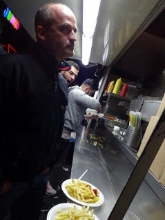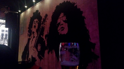 Clumsy fand sogar die begehrte weiß-blaue Keramik, die er zu kaufen beauftragt worden war. Nun brachten wir die Einkäufe in Sicherheit und gabelten den genesenen Gonzo auf, um schließlich im Locomotiva wiederum zum örtlichen FCSP-Fanclub zu stoßen. Inmitten einer Bibliothek mit allerhand linker Literatur lief dort das Spiel der Braun-Weißen gegen Darmstadt auf Sky, und es stand bereits 0:1 bei unserem Eintreffen. Es war ein ziemliches Gewürge, nicht schön anzuschauen, es fiel auch kein Tor mehr, aber das Grüppchen war nett. Mit zwei oder drei Bierchen intus rannten wir anschließend eine Weile durch die Gegend, Lars im Affenzahn immer vorneweg. Ich weiß gar nicht mehr genau, wo wir hinwollten, aber schließlich landeten wir in einem eher türkisch anmutenden, einfachen Lokal ziemlich mittendrin. Der Ober war von der ganz lässigen Sorte, hörte sich unsere gesamte Bestellung an, um dann fast fehlerfrei nochmal zusammenzufassen. Die Jungs brauchten totes Tier, serviert auf enormer Teigunterlage, während ich gefüllte Tomaten und Pommes wählte. Schlicht aber sehr lecker. Von den grilled peppers kostete ich lediglich die Spitze und nahm schnell Abstand, während Gonzo größere Fasern beinahe problemlos in sein Körperinneres aufnahm. Schon erstaunlich, wie unterschiedlich Schärfe wahrgenommen wird. Gut gesättigt bewegten wir uns wieder zu unserem Kiez, wo wir noch eine dezente Kneipe aufsuchten. Ein Abschlussbierchen musste schon sein, aber lang würde der Abend nicht mehr werden, selbst Lars wirkte schon nicht mehr durstig. Gegen 22 Uhr Ortszeit verließen wir dann den Laden, aber irgendetwas ließ uns noch in den Pub direkt gegenüber schlittern. Dort lief gerade W.A.S.P., an den Wänden hingen lauter Metal-Plakate und mir war klar, dass es hier wohl noch eskalieren würde. Zumal die Mucke richtig klasse war, aufgelegt von konkretem Deejay, der unsere Wünsche erahnte, wenn wir sie ihm nicht bereits selbst mitgeteilt hatten. Psychotic Waltz, Fates Warning, While Heaven Wept, Queensryche, etc. Wer will angesichts solch himmlischer Sounds denn schon ins Bett? Wir jedenfalls noch nicht, zumal das Mythos in eisgekühlten Humpen serviert wurde. Also blieben wir noch zwei, drei Stündchen, genehmigten uns zum Abschluss Jacky-Sprite und hatten mächtig Spaß. Zu guter Letzt überkam mich Wasserdurst biblischen Ausmaßes, der mich sämtliche vier oder fünf der muffigen Gläser innerhalb kürzester Zeit in mich hinein stürzen ließ. Gegen ein Uhr siegte schließlich der Restverstand, so dass wir uns in die Horizontale begaben, ausnahmsweise alle zeitgleich. |