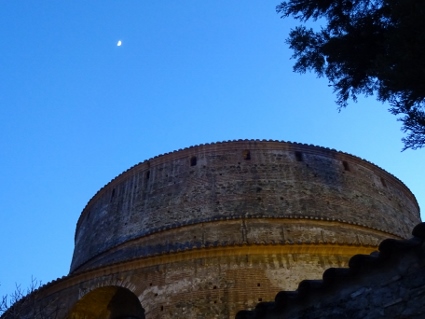 Besonders Gonzo waren Tatendrang und gute Laune anzumerken, schließlich hatte er ja lang genug geplant, seine Faves mal in Griechenland zu sehen. Ich konnte gar nicht so schnell lachen, wie er die Schoten zum besten gab. Besonders die Telefonstreiche einiger Waltroper Halbwüchsiger sorgten für ungläubige Zwerchfellkrämpfe. Hoffentlich werden die entsprechenden Aufnahmen doch noch der Nachwelt zugänglich gemacht, dann kann Studio Braun einpacken. Nach einigen Bierchen brachen wir auf, um ein wenig umherzuirren auf der Suche nach einer Essgelegenheit, bis wir schließlich in der Pizzeria Casa landeten. Viel los war dort nicht, aber das Personal zeigte sich freundlich und ich bekam sogar eine Pizza mit pflanzlichem Käseersatz, eine "Fastenpizza" sozusagen, die sich als äußerst lecker herausstellte. Die Kollegen schienen auch gut gesättigt, als wir den Laden wieder verließen, um uns mit dem örtlichen St. Pauli - Fanclub unterm Galeriusbogen zu treffen, von wo aus wir ins Café Rotonda gingen. Dort hatten einige weitere Fans bereits das 1:0 durch Sobotta in Dresden bejubeln dürfen. Warum im griechischen TV die 2. Bundesliga live übertragen wird, erschloss sich mir zwar nicht ganz, aber uns sollte es natürlich recht sein. Die paar normalen Besucher interessierte das Spiel auch nicht weiter, es wurde gezockt oder auf dem Notebook rumgeklimpert. Wir hingegen beobachteten von unseren Topplätzen aus, wie St. Pauli den Dresdnern weitgehend die Initiative überließ, um am Ende eiskalt zu kontern und 3:1 zu gewinnen. Schön war's nicht, aber erfreulich. So stießen wir mit Bier und Grappa an, freuten uns mit unseren netten Gastgebern, bis wir gegen halb eins das Café verließen. Clumsy und ich gingen vernünftigerweise gleich auf unsere Zimmer, während Lars und Gonzo natürlich noch einen Absacker nehmen mussten. |
