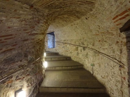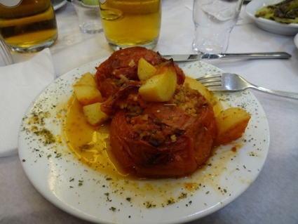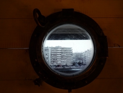 Am ersten Tag mit kompletter Mannschaft gingen wir am späten Morgen gemeinsam los, um natürlich zuerst mal etwas in den Magen zu bekommen. Wir wählten das Café Blackberry, wo die örtliche Schutzpolizei sich bereits gemütlich breitgemacht hatte. Bedient wurden wir wieder äußerst nett, das fing schon mit eigenäugiger Begutachtung des Teesortiments an. Die Herren bestellten recht eilastig, während mir so etwas wie ein Körnerbrötchen mit diversem Gemüse nahegelegt wurde. Das nahm ich dann auch und war zufrieden, die Kollegen hatten etwas länger zu kauen, schienen aber auch gut satt geworden zu sein. Eigentlich hätten wir noch ein Weilchen so sitzen können, als Gonzo von den Örtlichkeiten zurückkam und auf den Aufbruch drängte. Die Rede war vom "grande malheur" und dass wir besser das Weite suchen sollten, um nicht noch zur Rechenschaft gezogen zu werden. Es war zu hoffen, dass das Café an diesem Tag nicht frühzeitig schließen musste. Anschließend gingen wir nochmal zu viert die Uferpromenade entlang, mir wurde ein zweites Hakuna-Matata-Bändchen verpasst, und diesmal sahen wir den Weißen Turm auch von innen. Dort ist so eine Art Heimatmuseum untergebracht, dessen Ausstellung hauptsächlich aus erklärenden Tafeln und kurzen Filmen auf verschiedenen Monitoren besteht, wozu man am besten noch einen Audioguide ans Ohr hält. So erfuhren wir dann einiges zur Entwicklung Thessalonikis und wie es zu dem hässlichen Stadtbild kommen konnte, nicht uninteressant. Außerdem kam man auf der obersten Plattform in den Genuss der guten Aussicht, wo ich die anderen allerdings schon eine Weile aus den Augen verloren hatte. Eine der Blasen war zum Bersten gefüllt, weswegen die Tour etwas beschleunigt worden war. Draußen trafen wir uns dann wieder, genossen erneut Bierchen in der Sonne (diesmal an etwas zugigem Platz), und klapperten dann auf Betreiben Gonzos einige Plattenläden ab, nicht ohne nochmal durch die Marktstraßen gegangen zu sein, wo ein frischer Schweinekopf auf dem Hackklotz glänzte. Bei Alone Records mit großer Metal-Abteilung hielten wir uns länger auf, bis die Kopfschmerzen in der vom Betreiber völlig verquarzten Luft zu stark wurden. Gekauft hat letztlich keiner etwas. |