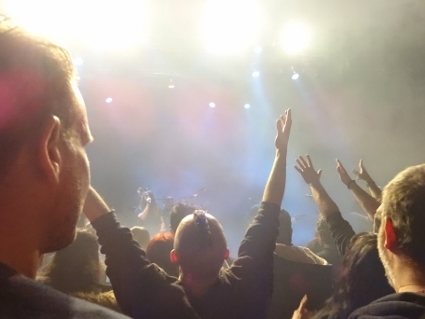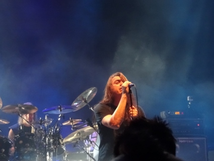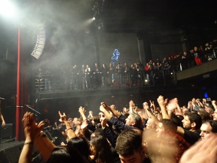 Beim weiteren Umherlaufen spülte es uns spontan in eine gemütliche Taverne, dessen Wirt uns überzeugte, es mit verschiedenen von ihm servierten kleineren Speisen zu versuchen. Dies erwies sich als guter Schachzug, da für alle etwas Passendes dabei war und das ganze sich recht authentisch anfühlte. Mein Speisenanteil war "nistisimo", ein Wörtchen das für Veganer in Griechenland recht nützlich ist. Weinblätter, Oliven, Linsenpastete, dazu fruchtiges Bier, waren eine recht gute Grundlage für den Konzertabend, abgerundet von einem Ouzo mit Eis. Bemerkenswert auch die abenteuerliche Wendeltreppe, die zu erklimmen war, wenn man die sanitären Anlagen aufsuchen wollte. Wir kamen alle heil wieder runter, um den bekannten Weg zum Principal Club zu bewältigen. Lars wurde an der Gaderobe zum zweiten Gig der Woche begrüßt, und schon waren wir drin, wo wir noch ein bisschen was von Methodica mitbekamen. Verpassen konnte man bei der biederen Truppe ja nicht viel. Wie erwartet war heute weniger los als bei Iced Earth, trotzdem war der Laden gefüllt genug, um die entsprechende Stimmung aufkommen zu lassen. Zwei FW-affine Pärchen aus Holland waren auch rechtzeitig eingetroffen, so dass wir uns diesmal nicht ganz so alt fühlten. Die Fates Warning - Show überzeugte von vorn bis hinten, wie das nach dem grandiosen Auftritt in Aschaffenburg nicht anders zu erwarten war. Diesmal in weniger beengten Verhältnissen machte es umso mehr Spaß, und die gut zwei Stunden vergingen wie im Flug, ohne dass es mir ansatzweise zu lang gewesen wäre. Es gibt also doch noch Headliner, die ne amtliche Vollbedienung anbieten und nicht schon nach 70 oder 80 Minuten das Weite suchen. Was war das aber auch für eine geile Setlist! Einzig "And Yet It Moves" fand ich nicht komplett spannend, ansonsten jagte ein Hit den nächsten. Und die Band wirkte wie aus einem Guss, selbst Jim Matheos zeigte Anflüge von Lächeln, einfach perfekt. Mit "Eye To Eye" verabschiedeten sie sich nach einem großartigen Auftritt. Wie gut dass wir das morgen nochmal würden sehen dürfen! Mit Clumsy machte ich mich wieder etwas früher als die beiden anderen auf den Rückweg, nicht ohne bei Mama Tereza eine Pommespause einzulegen. Crippled Black Phoenix in Dauerrotation unterstützten meinen geruhsamen Schlaf. |