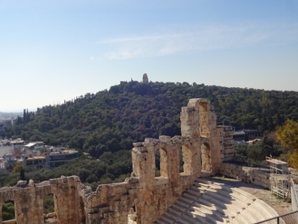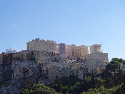 Und schon brach der letzte Tag unseres kleinen Ausflugs an. Clumsy, Krampfes Bruder und Magnesium-Junkie wie ich, litt unter seniler Bettflucht und stattete in seiner Verzweiflung auf eigene Faust dem archäologischen Museum gegenüber vom Hotel einen wohl eher unfruchtbaren Besuch ab. Im Gegensatz dazu brauchte Gonzo nach den nächtlichen Vergnügungen bis auf Weiteres Liegepause, so dass wir zu dritt auf den Touritrip durch Athen starteten. Zum Frühstück holten wir uns erstmal Gebäckartiges und verzehrten dieses draußen im Freien, ganz so kalt war es ja nicht. Dabei konnten wir nochmal feststellen, in welchem Kiez wir uns aufhielten. Ein offizieller St. Pauli - Store gleich nebenan, Totenkopf-Grafittis, Banner mit irgendwelchen Parolen an den Fassaden, der ganze Kram, fast wie zu Hause. Dann ging Lars wie immer mit Handy im Anschlag voran, aber erstmal verliefen wir uns wohl etwas, denn wir stolperten in finsteren Ecken durch die Crack- und Alkiszene. Bald aber stimmte die Richtung, so dass wir uns auf die Akropolis zubewegten. Sonnig war es ja eh die ganze Zeit schon, und nun wurde es gegen späten Vormittag auch frühlingshaft mild, weswegen die dicken Jacken bald zur Bürde wurden. Ein vorgelagerter Felsen bot eine tolle Aussicht über die Stadt und hinüber zur Akropolis, wobei zum Glück nur mäßig viele weitere Touristen unterwegs waren. Als wir dort die Blicke schweifen ließen, drang von unten irgendwo her Musik an unsere Lauscher. Tatsächlich, das war eindeutig "Always Somewhere" von den Scorpions, was in dem Moment super passte und für einen klasse Soundtrack sorgte. Weiter ging's zum absoluten Hotspot, der Wiege der europäischen Demokratie, die außerhalb der Saison für schlappe 10 Euro begutachtet werden konnte. Der Parthenon sah aus, wie man ihn von Fotos kannte, vorm azurblauen Himmel schon recht malerisch. Der felsige Untergrund war vom ständigen Besucherstrom so glattgelatscht, dass man aufpassen musste, nicht aufs Maul zu fallen. Keine Ahnung wie man sich dort bei Nässe auf den Beinen halten soll. Wir drehten dort oben also unsere Runde und ließen die nette Atmosphäre auf uns wirken. Sicher kann man dort auch Stunden verbringen, aber wir hatten ja noch einen Termin. Also ließen wir uns wieder abwärts treiben Richtung Zentrum, diesmal auf so einer Art Hauptweg, der von unzähligen Händlern gesäumt war, die es natürlich auf die Touris abgesehen hatten. Wir guckten aber nur und blieben standhaft. Als wir schließlich im Flee Market landeten, war es aber soweit, und wir ließen uns zum Souvenirkauf hinreißen. |